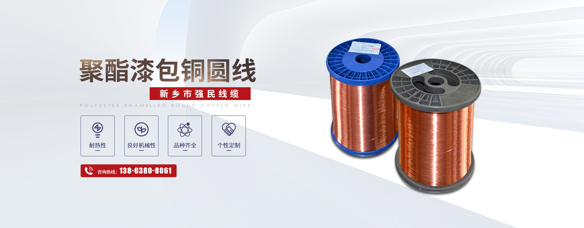 新鄉市強民線纜有限公司主要銷售各種規格高性能銅漆包線、鋁漆包線、紙包線和玻璃絲包線,年銷售能力3萬噸。  公司技術力量雄厚,設備精良,所銷售的鋁漆包線與玻璃絲包線等產品性價比高,采用國內催化燃燒環保節能型漆包機、臺灣技術的雙變頻調速拉絲機等全套銷售漆包線設備和采用IEC標準對漆包線進行檢測的全套測試儀器,能滿足各類漆包線產品銷售需要。嚴格的質量控制體系,科學的產品檢測手段,使產品的質量得到更充分的保證,在同行業中享有很高的聲譽?! 」臼冀K把產品質量放在重要地位,制定了高于國際行業標準的公司內部質量執行標準,在過程中我們經歷了抓電阻、抓漆粒、抓耐壓、抓回彈、抓排線,在每一次活動中都得到了明顯的預期效果,銷售工藝不斷的完善,檢測力度的大幅度提高,保證了漆包線產品過硬的質量。企業通過了GB/T19001-2008-ISO9001:2008標準認證和ISO14001:2004環境管理體系認證。漆包線,不僅暢銷全國,還不遠萬里出口到非洲剛果等地。公司以“互惠互利、誠信發展”的服務宗旨,配以完善的售前售后服務,全力為用戶提供各種漆包線的制造和定制,贏得了合作企業的廣泛好評?! ∥夜颈局?*質量,不斷改進管理,滿足社會需求,保證客戶滿意的方針,開拓出一條規?;l展,**經營的新企業之路,熱忱歡迎海內外各界友人惠顧。